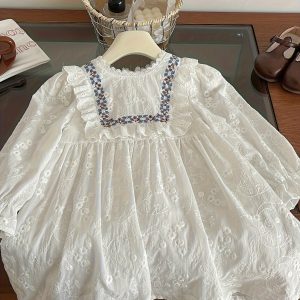 Girls’ Korean Style Floral Embroidered Long Sleeve Princess Dress