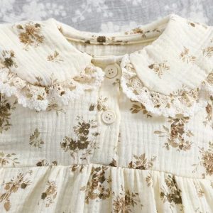 Girls’ Floral Print Dress with Contrast Lace Collar