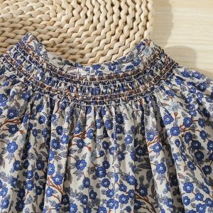 Girls’ Elegant Floral Print Dress with Stand Collar & Long Sleeves
