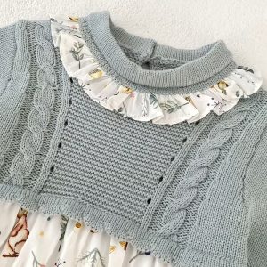 Knitted Dress – Long Sleeve Smock Dress with Floral Panel