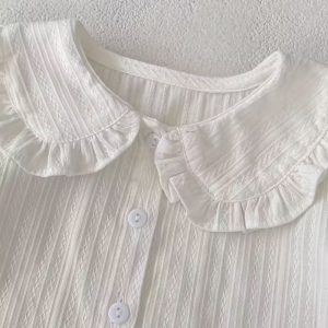 Two-Piece Set – Doll Collar Jacquard Top + Floral Double Layer Floral Pants