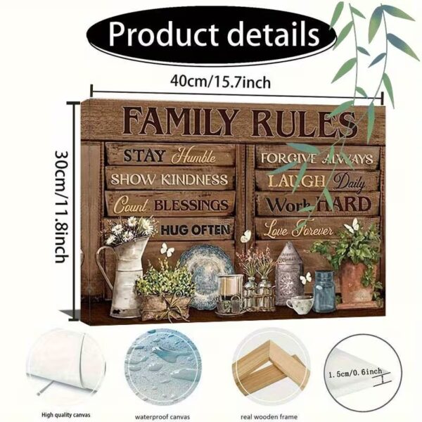 Family Rules Wooden Framed Canvas Art