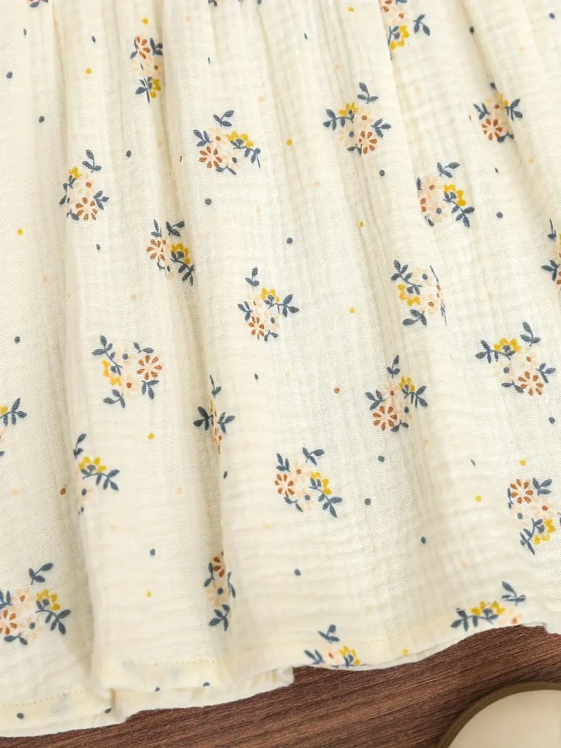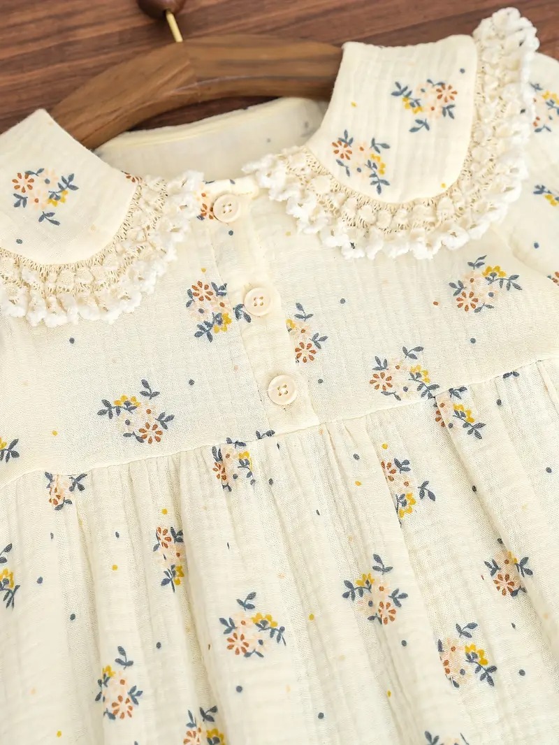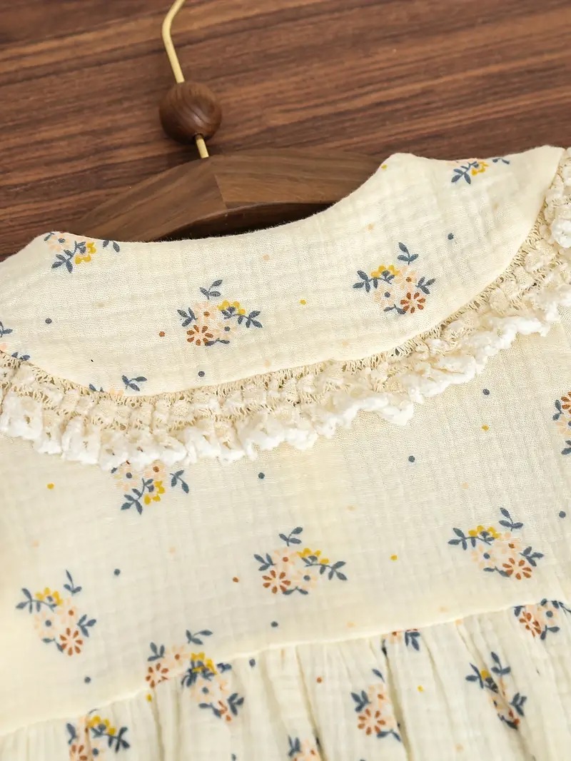 Girls’ Floral Print Dress with Contrast Lace Collar