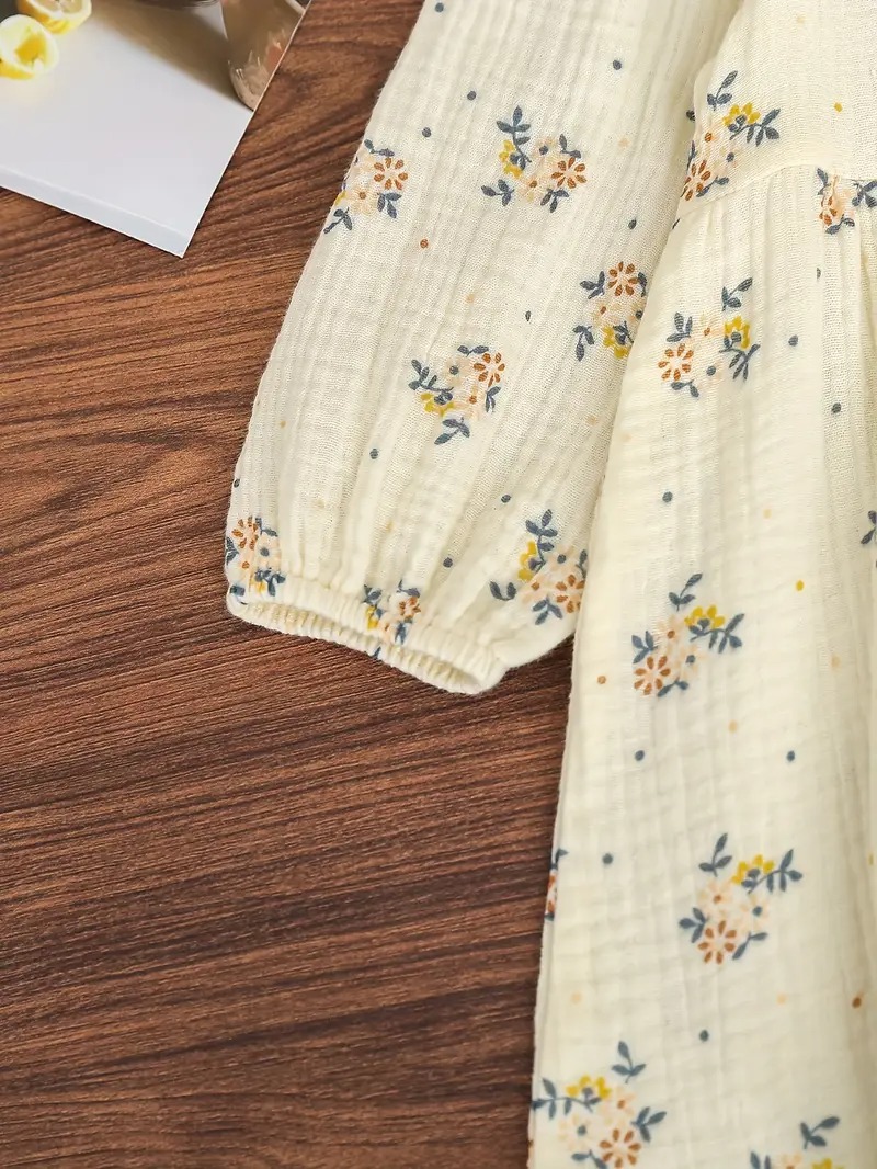 Autumn and Winter Girls’ Baby Doll Collar Floral Sweet Cute Long Sleeve Dress