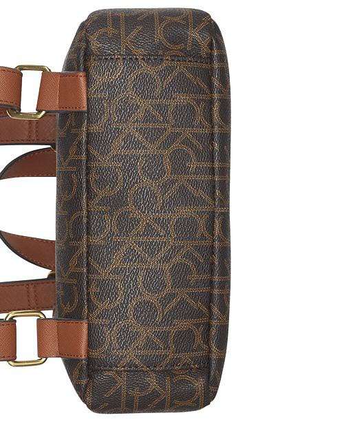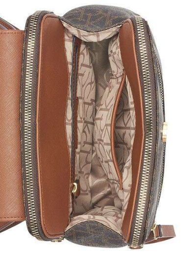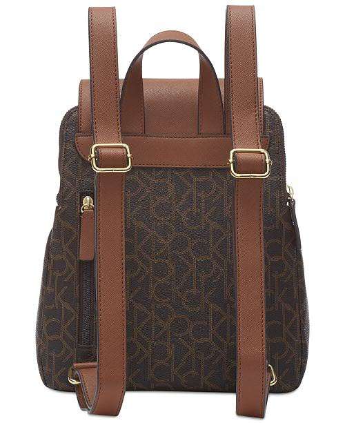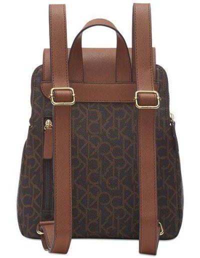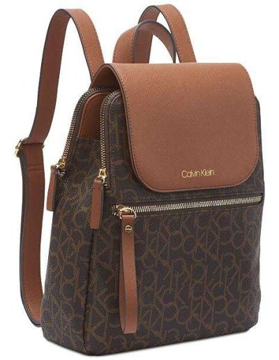 This Calvin Klein small backpack bag is a practical bag with a flap and snap closure and gold-tone exterior hardware and a zip pocket.