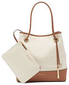 This elegant and stylish Calvin Klein – CK Two-Tone Tote bag features a Gold-tone hardware with 1 Slip Pocket, 1 Zip Pockets and a Drawstring closure