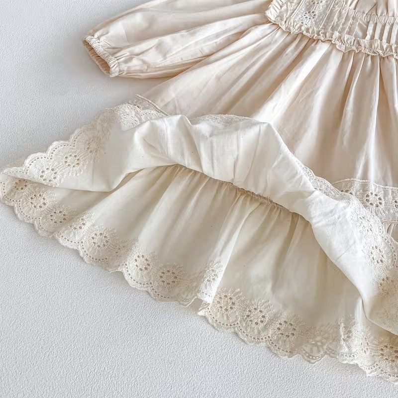 Girls’ Floral Print Dress with Contrast Lace Collar