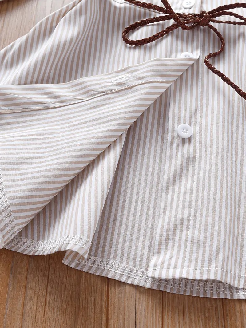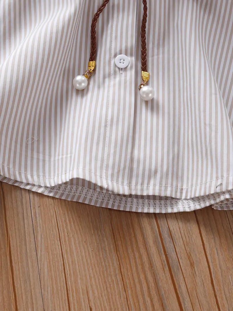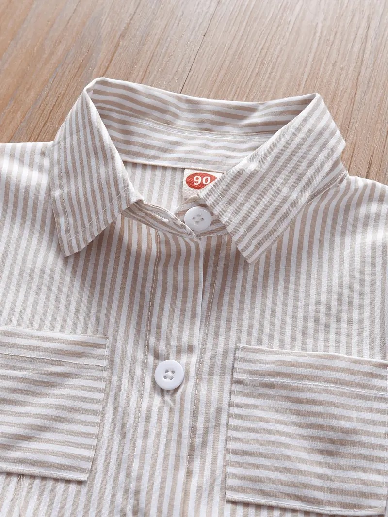Chic Girls' Striped Cotton Blend Shirt Dress with Pockets quantity