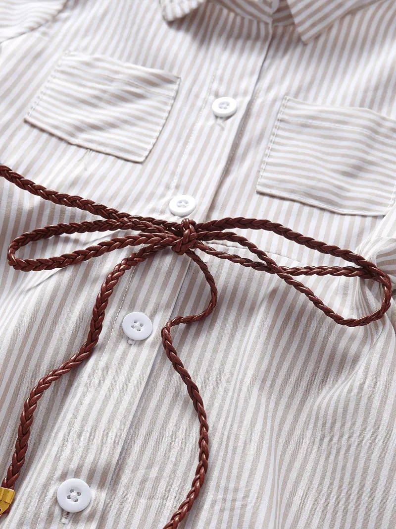 | Chic Girls’ Striped Cotton Blend Shirt Dress with Pockets