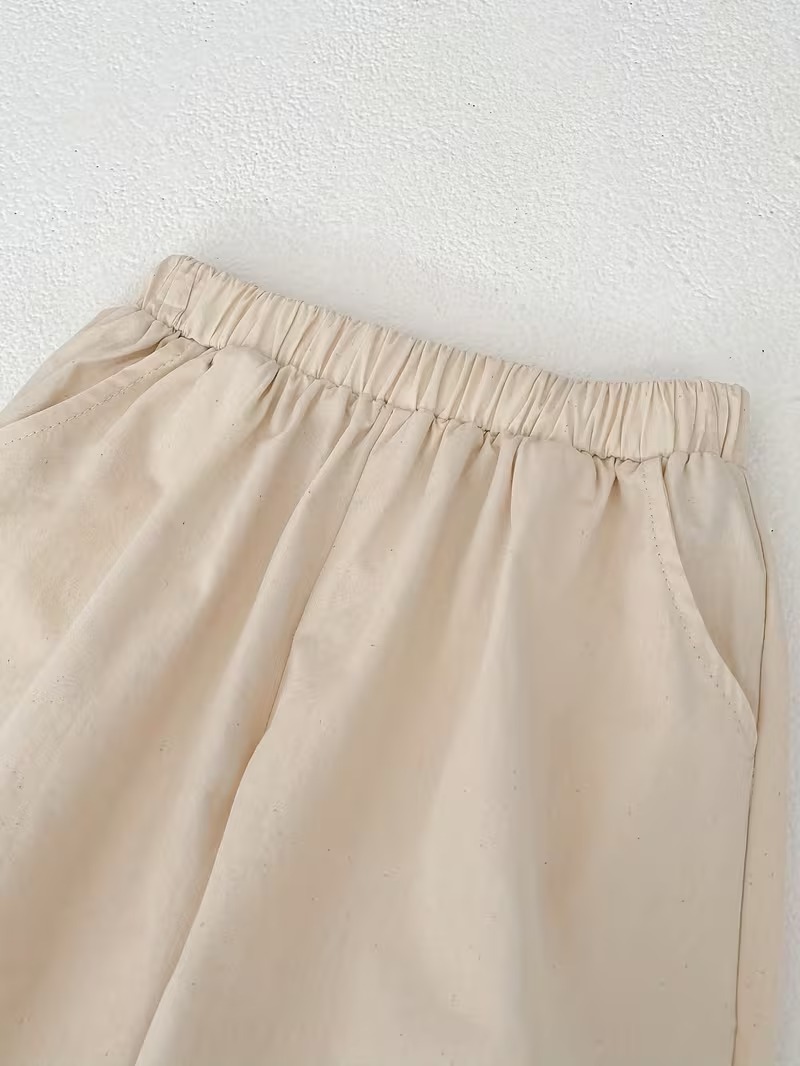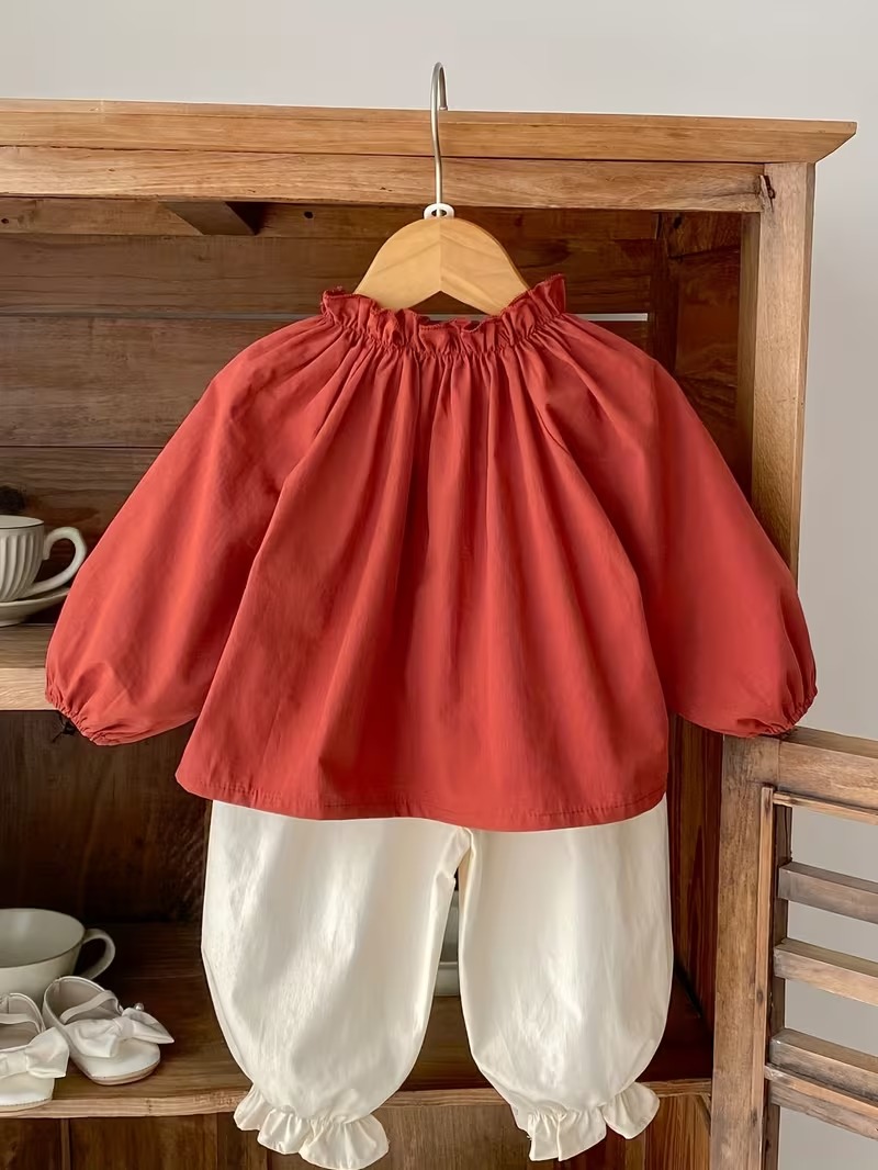 - Wooden collar long-sleeved shirt + trousers cotton loose comfortable two-piece set
