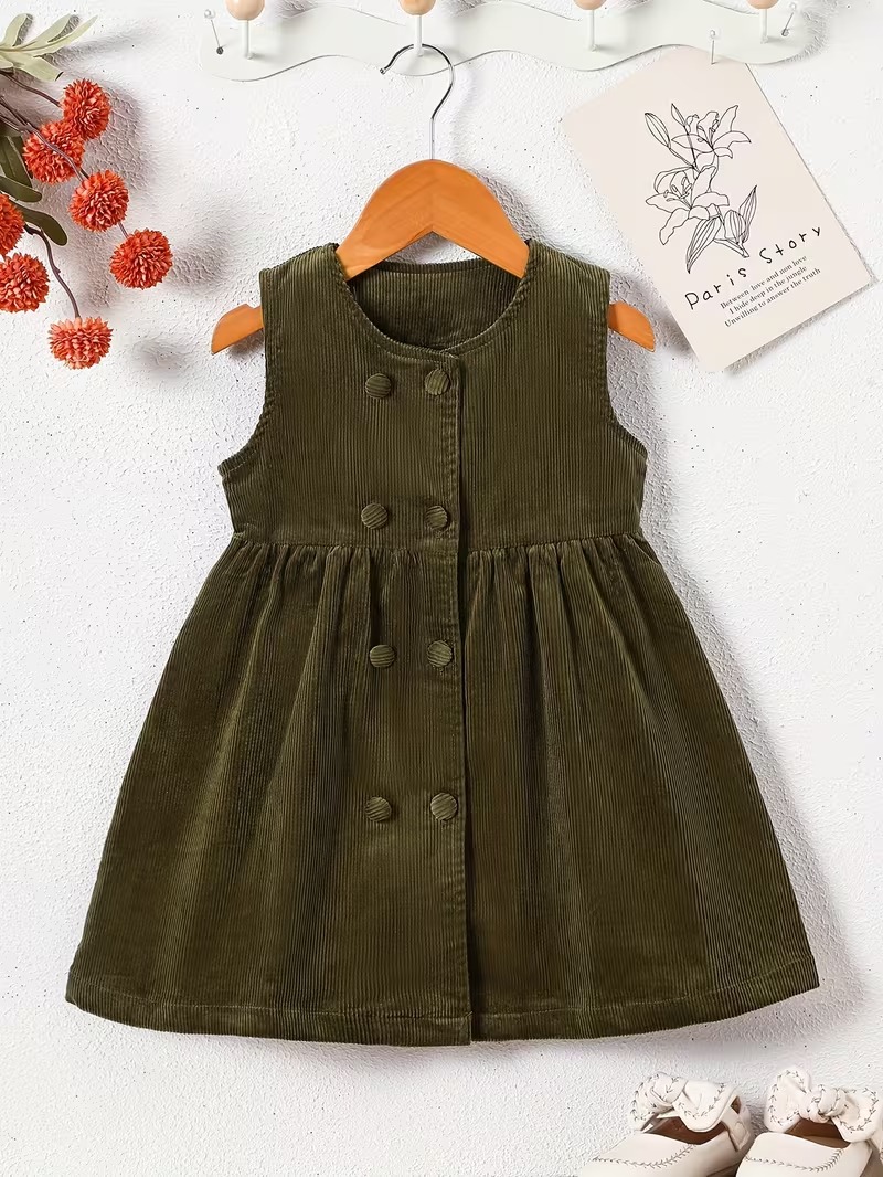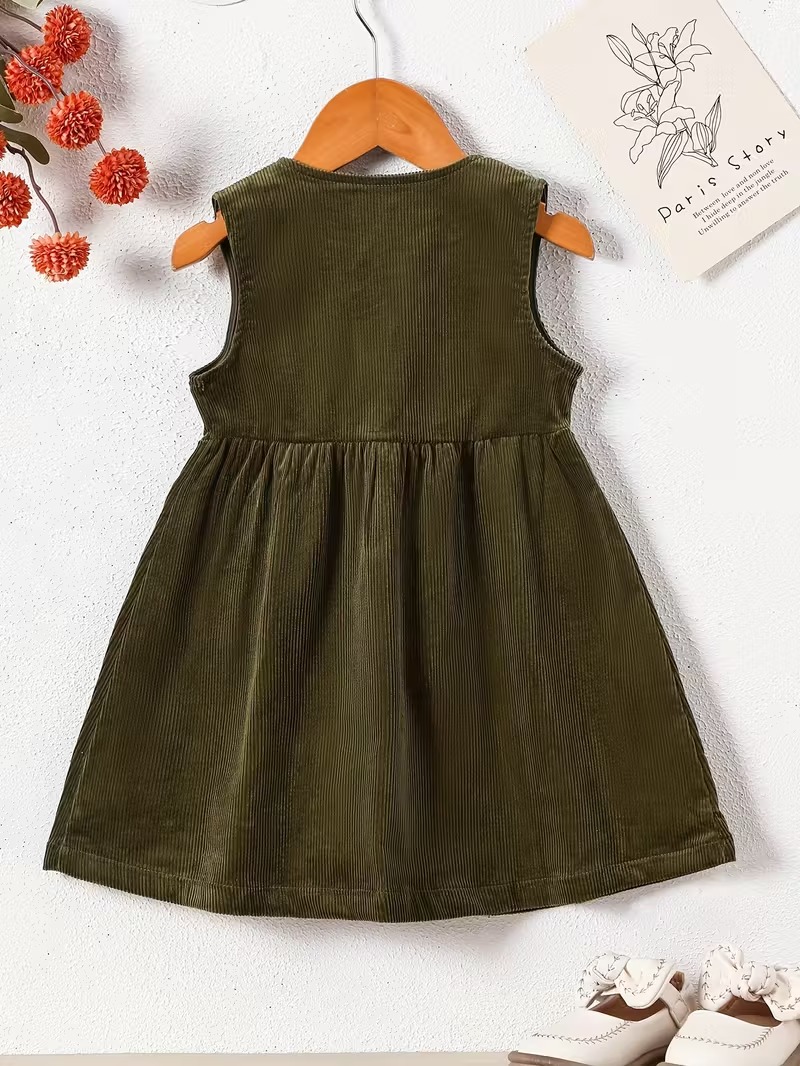 Girls’ Elegant Floral Print Dress with Stand Collar & Long Sleeves