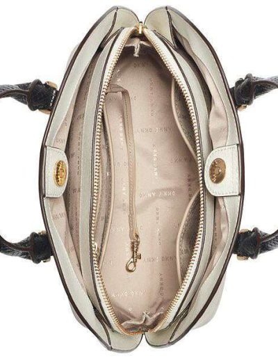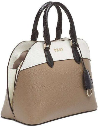 This DKNY has a numerous pockets that turn up the fashionable functionality of this two-tone leather satchel from DKNY.