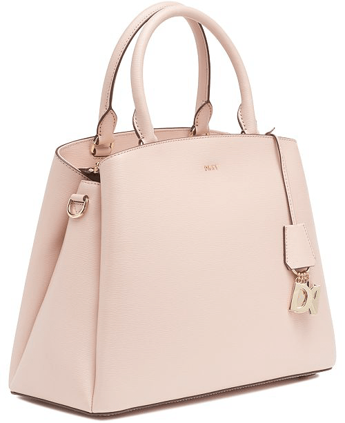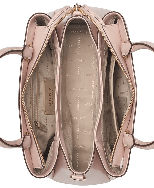 Stay chic and organized with the DKNY Satchel, featuring a large space with Light gold-tone exterior hardware & 1 back zip pocket and an optional crossbody strap.