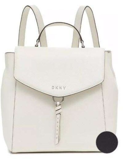 DKNY Lola Black Backpack is a practical bag with a Silver or Gold-tone hardware and a magnetic flap closure.