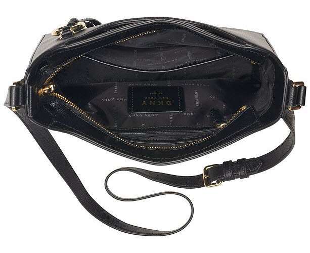 This DKNY shoulder bag is made of leather and it consists of 1 zipper pocket, 1 open pocket and is ideal for every day use.