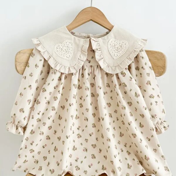 Baby’s Elegant Retro Style Ruffled Long Sleeve Cotton Dress
