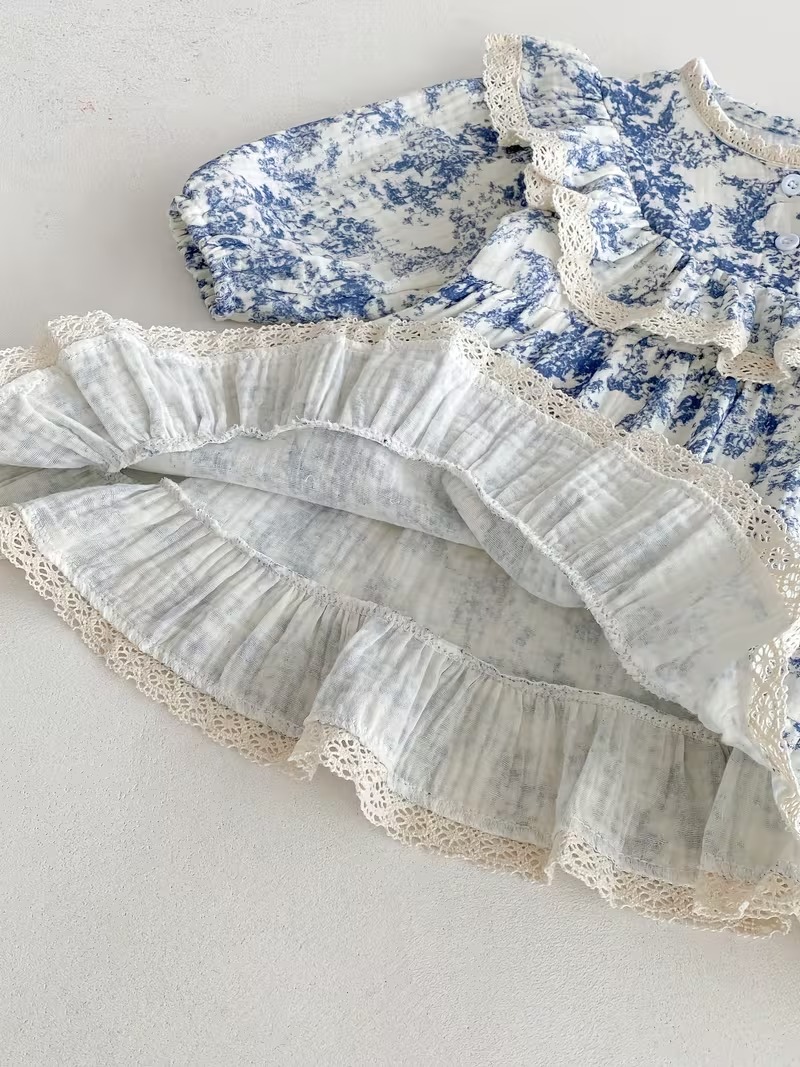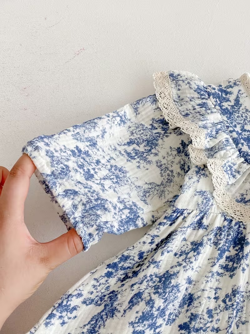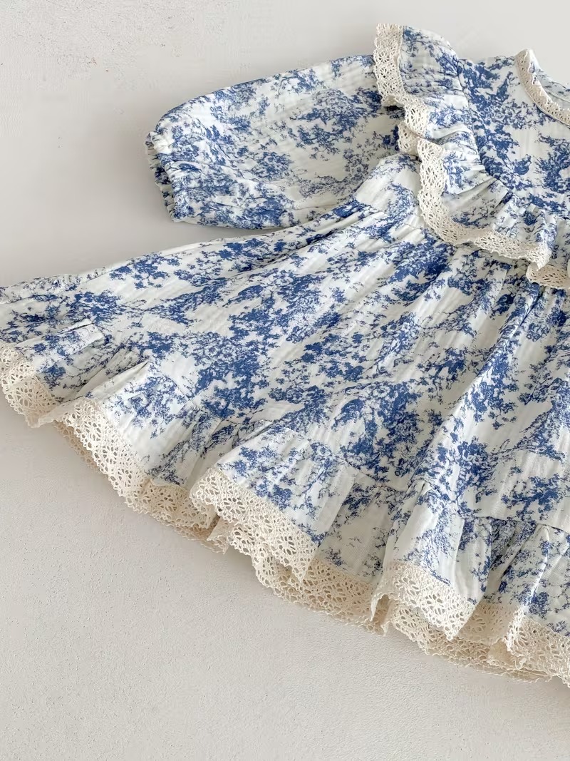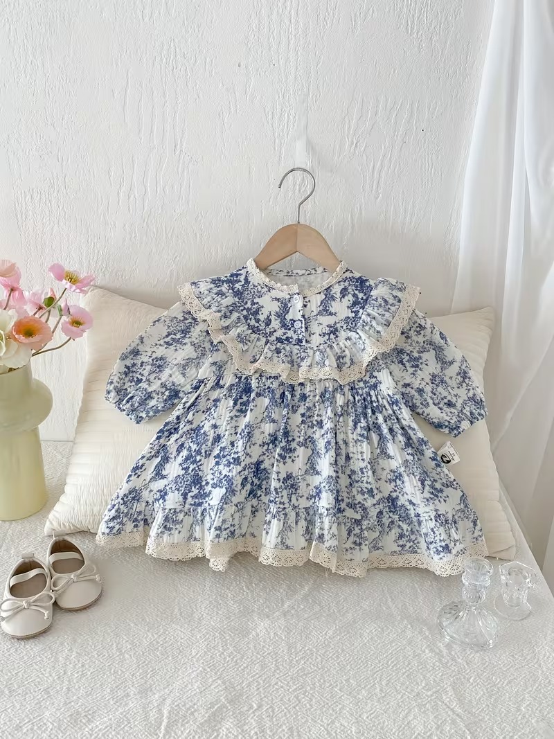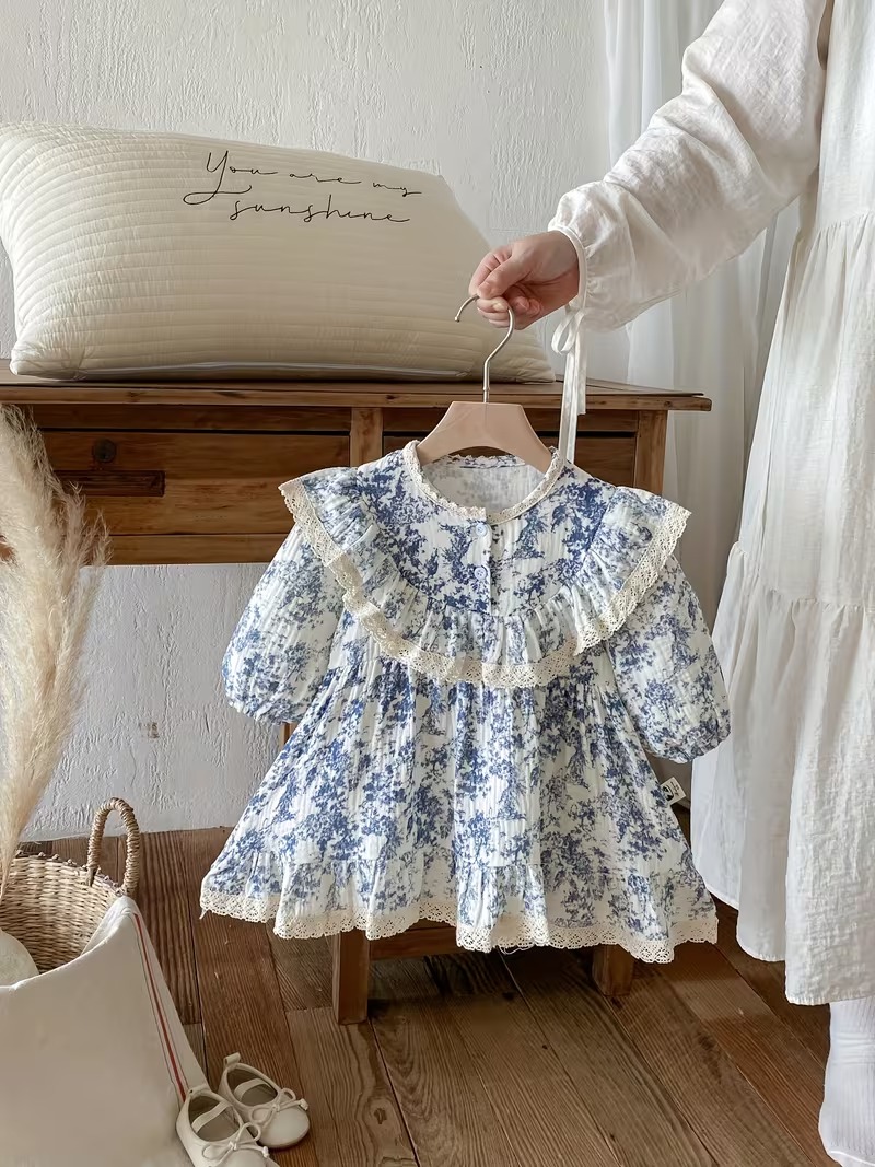 - Knee-Length Princess Dress with Ruffled Sleeves & Lace Trim