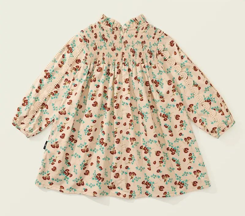 Girls’ Floral Print Dress with Contrast Lace Collar