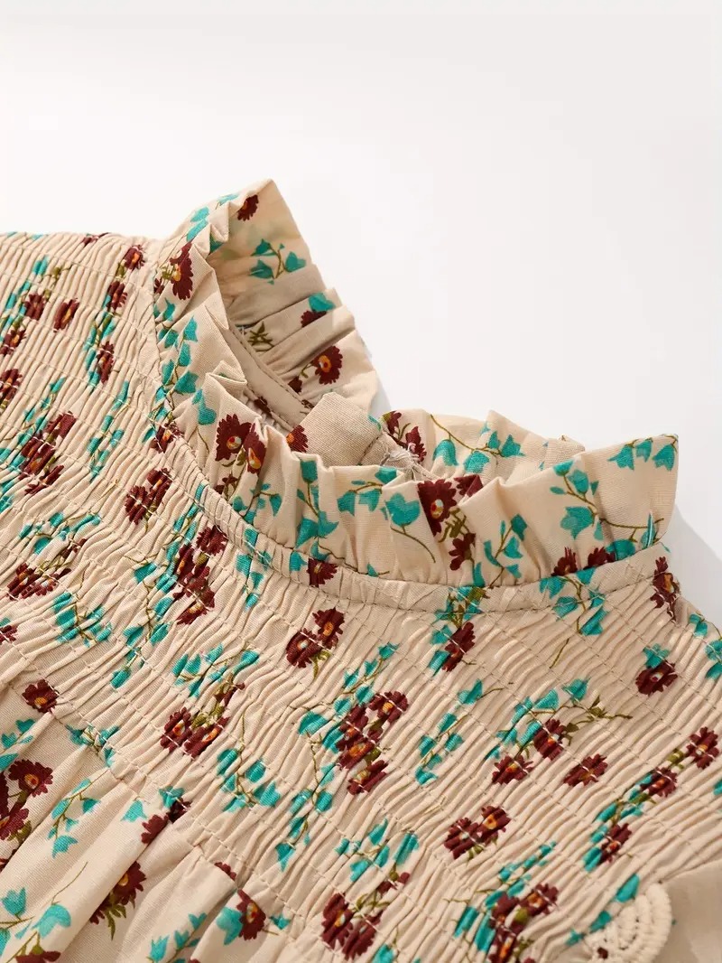 Girls’ Bohemian Floral Print A-Line Dress with Keyhole Neckline & Ruffled Sleeves