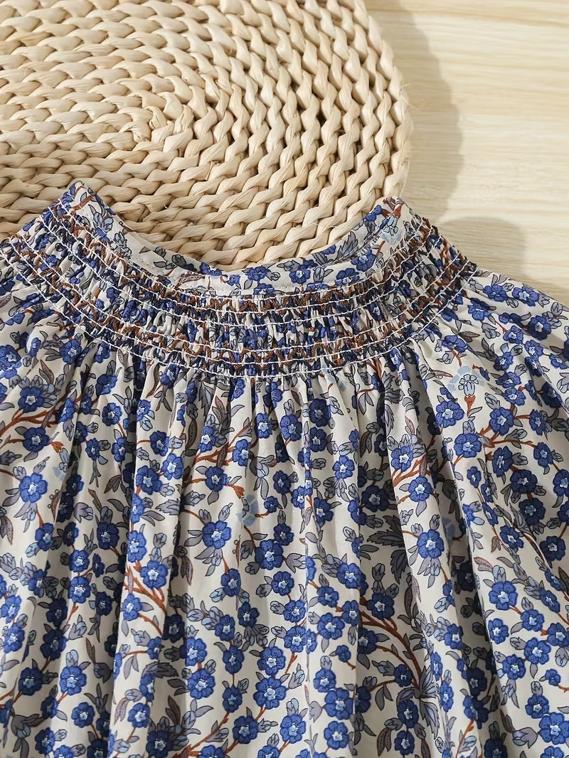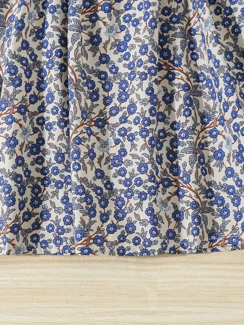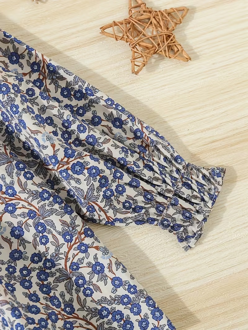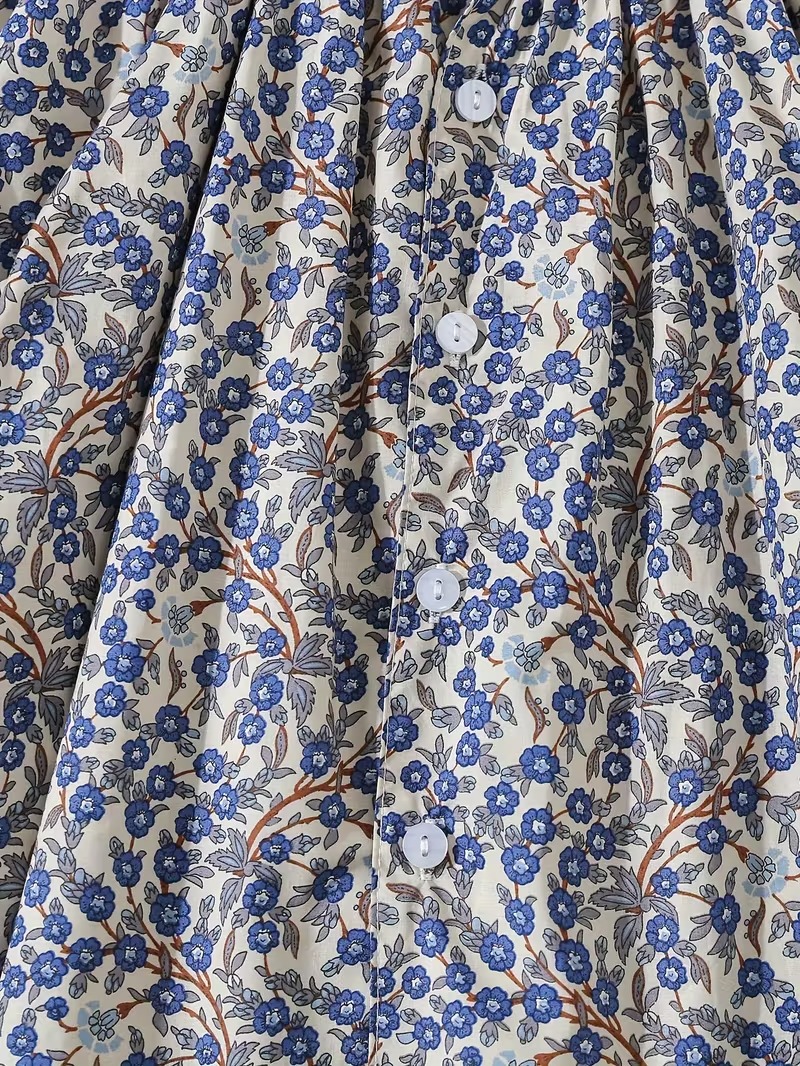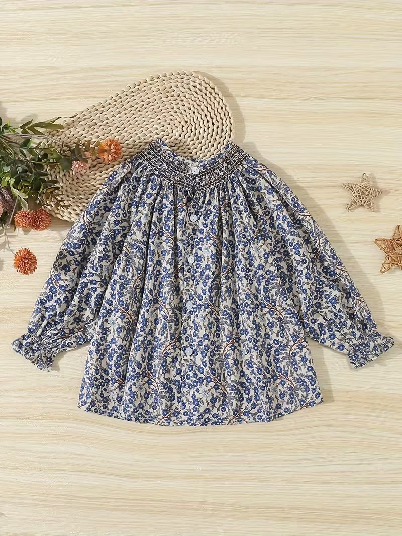 Girls’ Printed Cable Long Sleeve Loose Fit Shirt with Natural Bust Drape