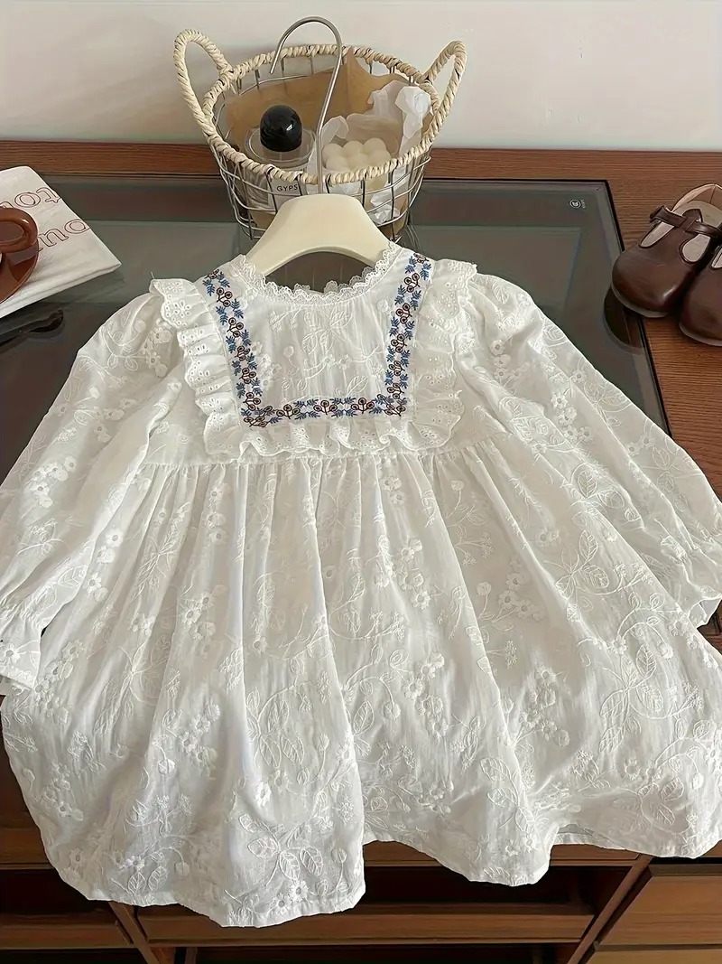 Pastoral Print Lace Trim Collar Petal Long Sleeve Casual Dress