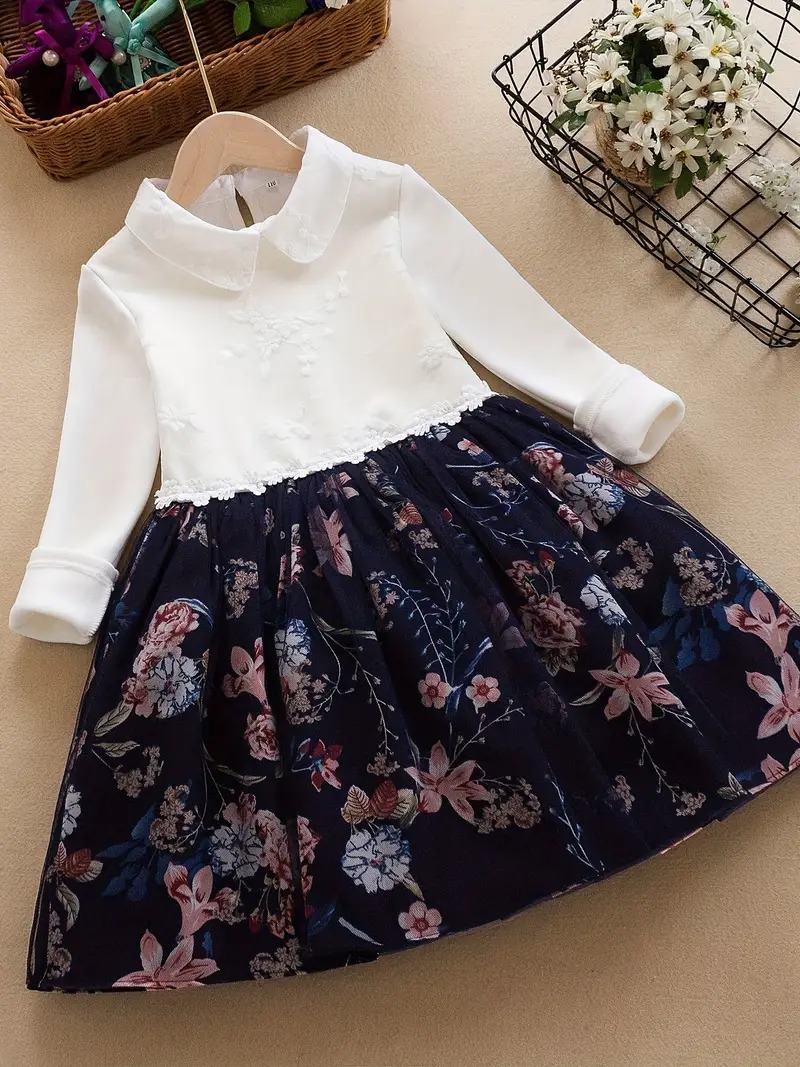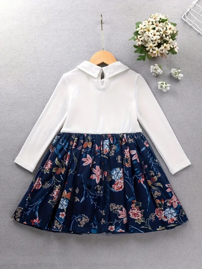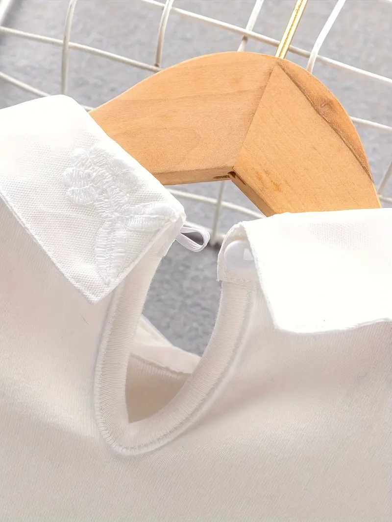 • Dress features a baby doll neckline with embroidered mesh inserts on the collar and front panel