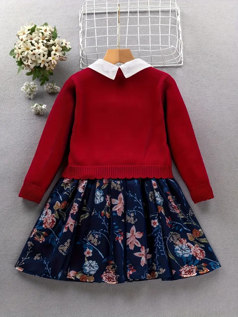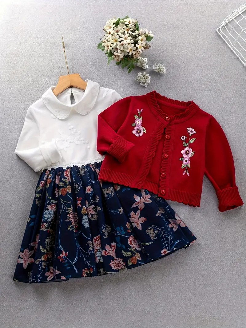 Girls’ Spring and Autumn Two-Piece Set (crimson)