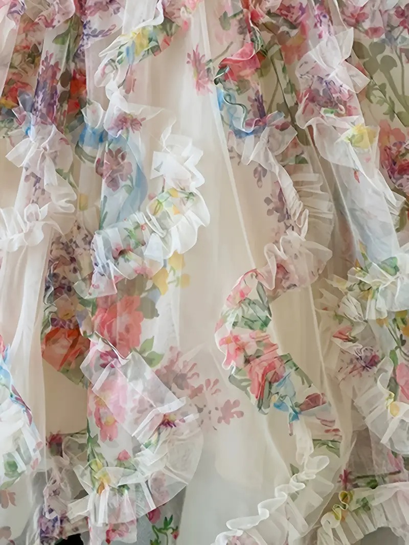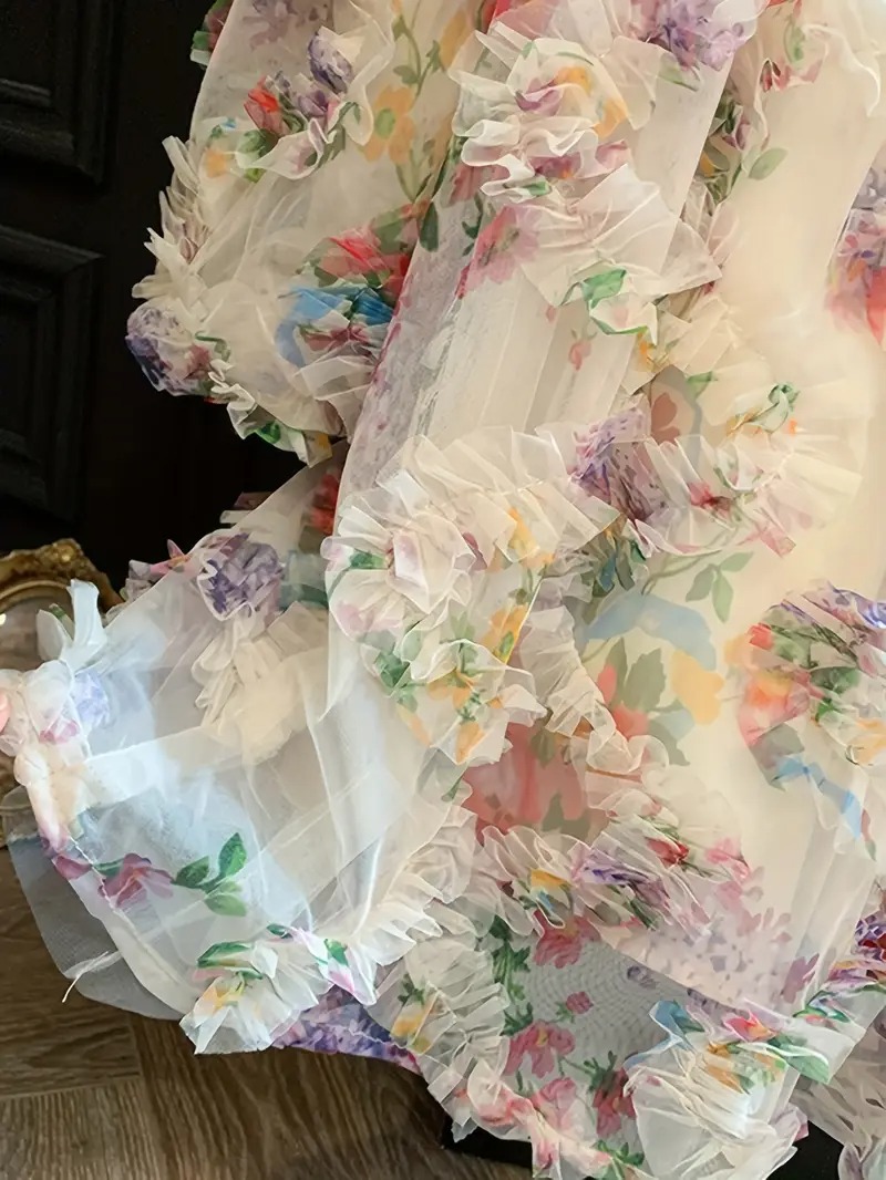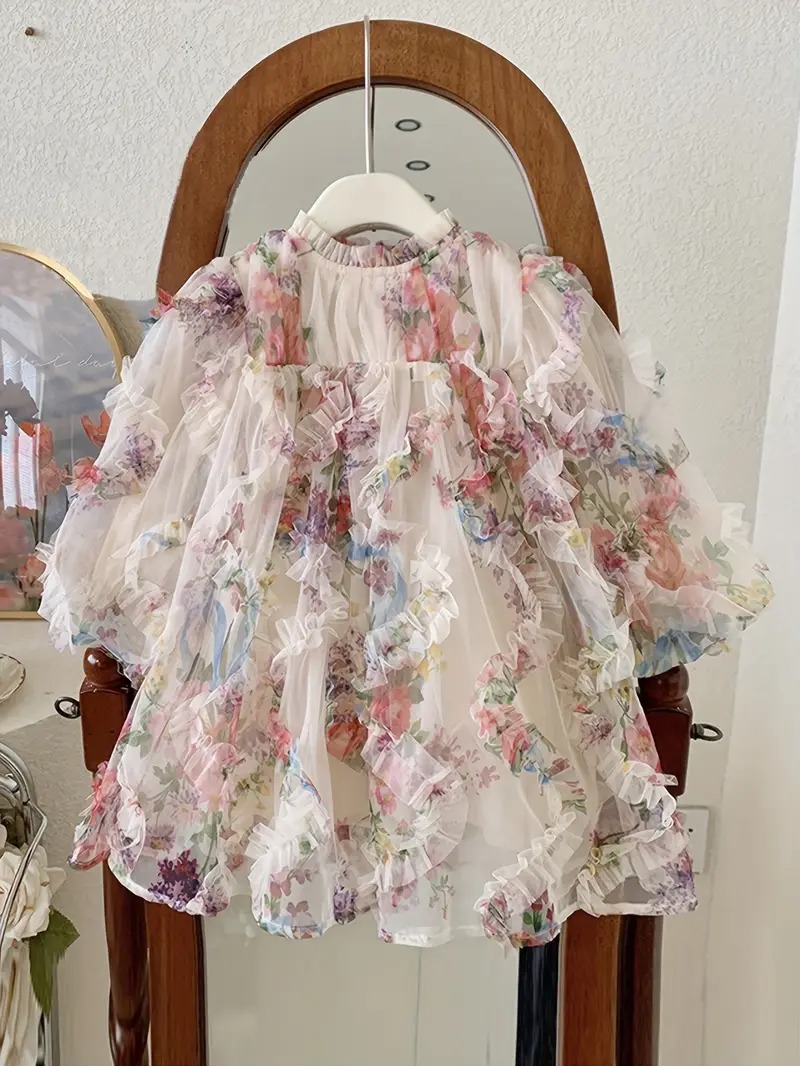 Girls’ Vintage Floral Print Ruffled Sleeve Princess Dress