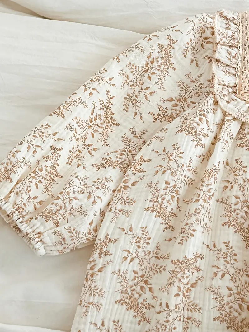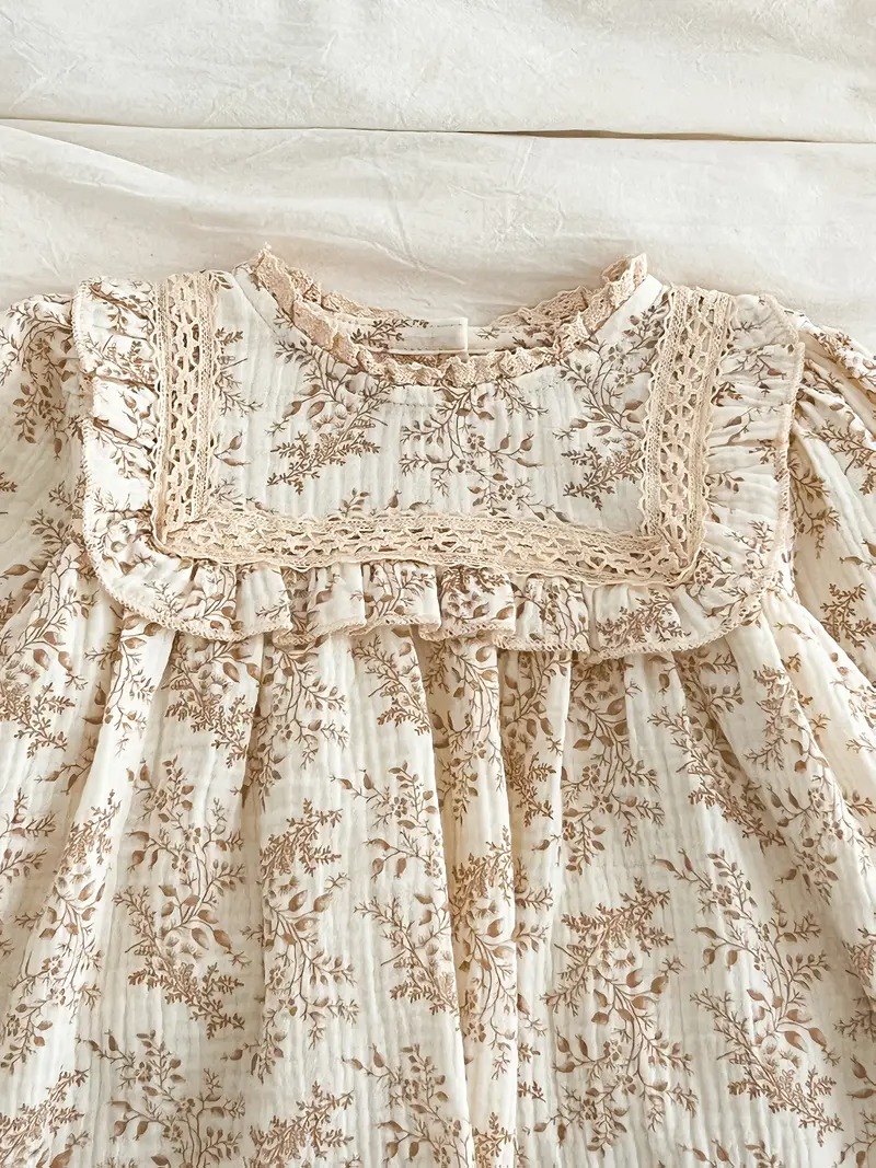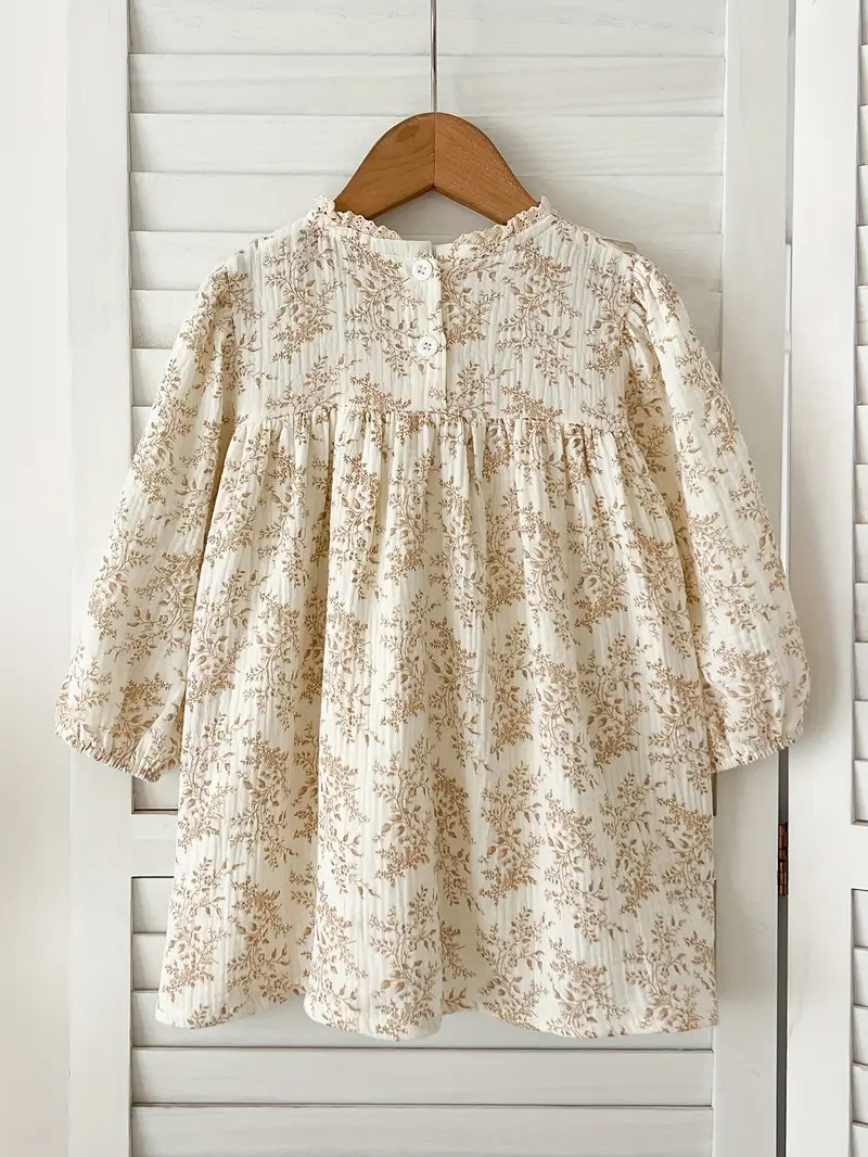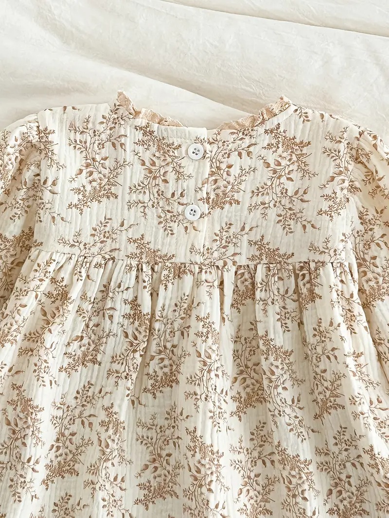| Girls’ Vintage Floral Print Ruffled Sleeve Princess Dress