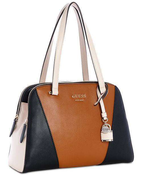 The GUESS Cali Shoulder Bag conceals multiple compartments in a sleek, organized design that complements work and weekend alike.