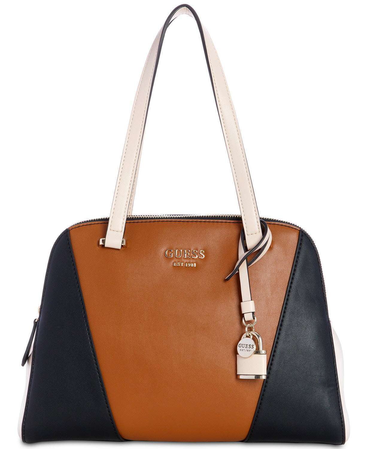 - Gold-tone hardware; exterior logo & lock charm