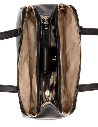 The GUESS Cali Shoulder Bag conceals multiple compartments in a sleek, organized design that complements work and weekend alike.