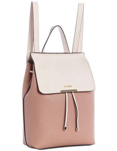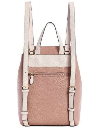 A chic backpack used for work or play. The GUESS Varsity Pop Backpack features a pale gold-tone hardware and a subtle logo on front flap.