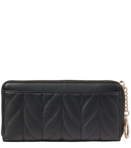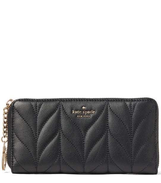 This Kate Spade large wallet bag is made of quilted smooth leather with a pinmount logo and holds 12 credit cards. Very Versatile.