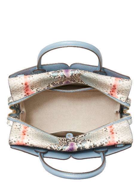 - pebbled leather with snake-embossed Italian leather trim