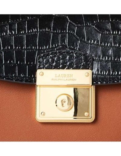 - “Lauren Ralph Lauren”-engraved pad lock closure