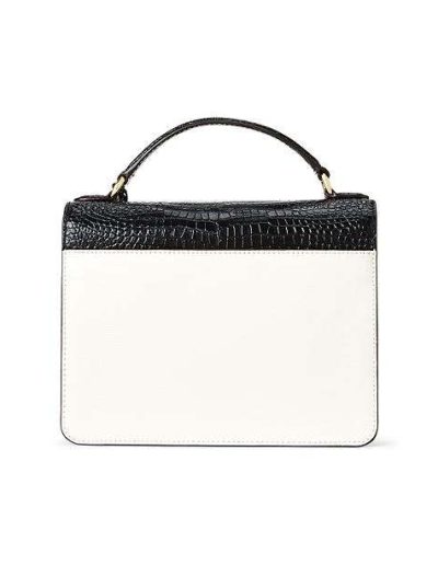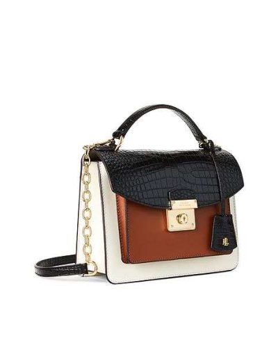 This stylish Lauren Ralph Lauren satchel is finished with a crocodile-embossed flap which adds an exotic feel to this structured Saffiano leather satchel, finished with signature Lauren hardware and a delicate key charm at the luggage tag.