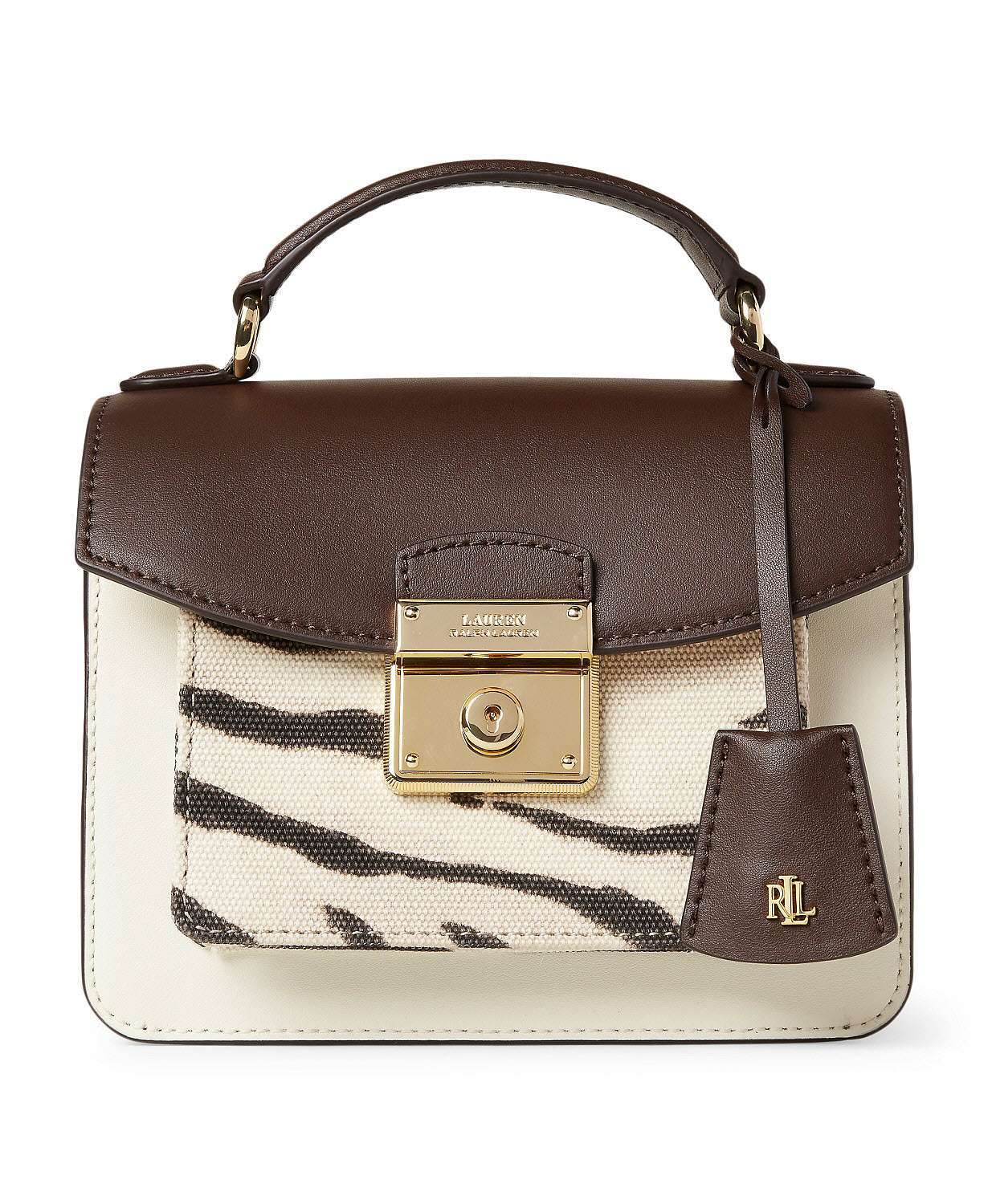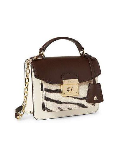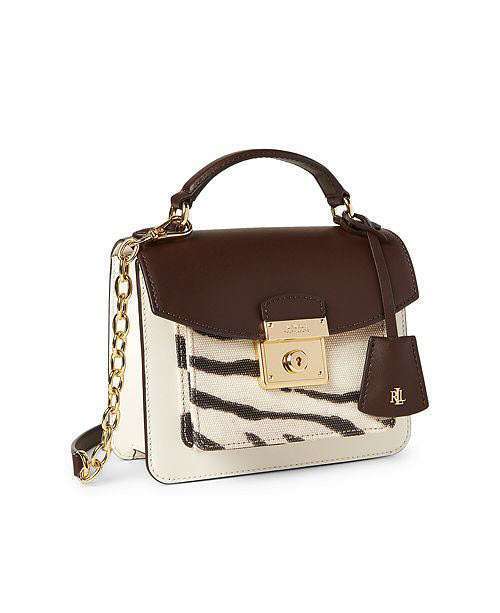This stylish Lauren Ralph Lauren satchel is finished with an exotic animal print With bold, color-blocked leather and a signature padlock. A removable crossbody strap provides versatility.
