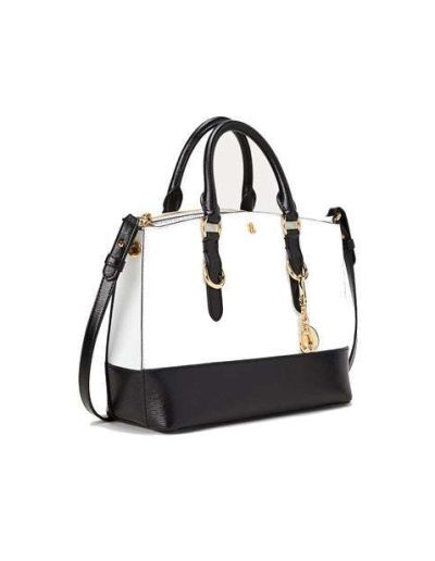 This Lauren Ralph Lauren  Saffiano Mini Leather Satchel is crafted from durable Saffiano leather. It consists of foil-printed “Lauren Ralph Lauren” logo at the front.