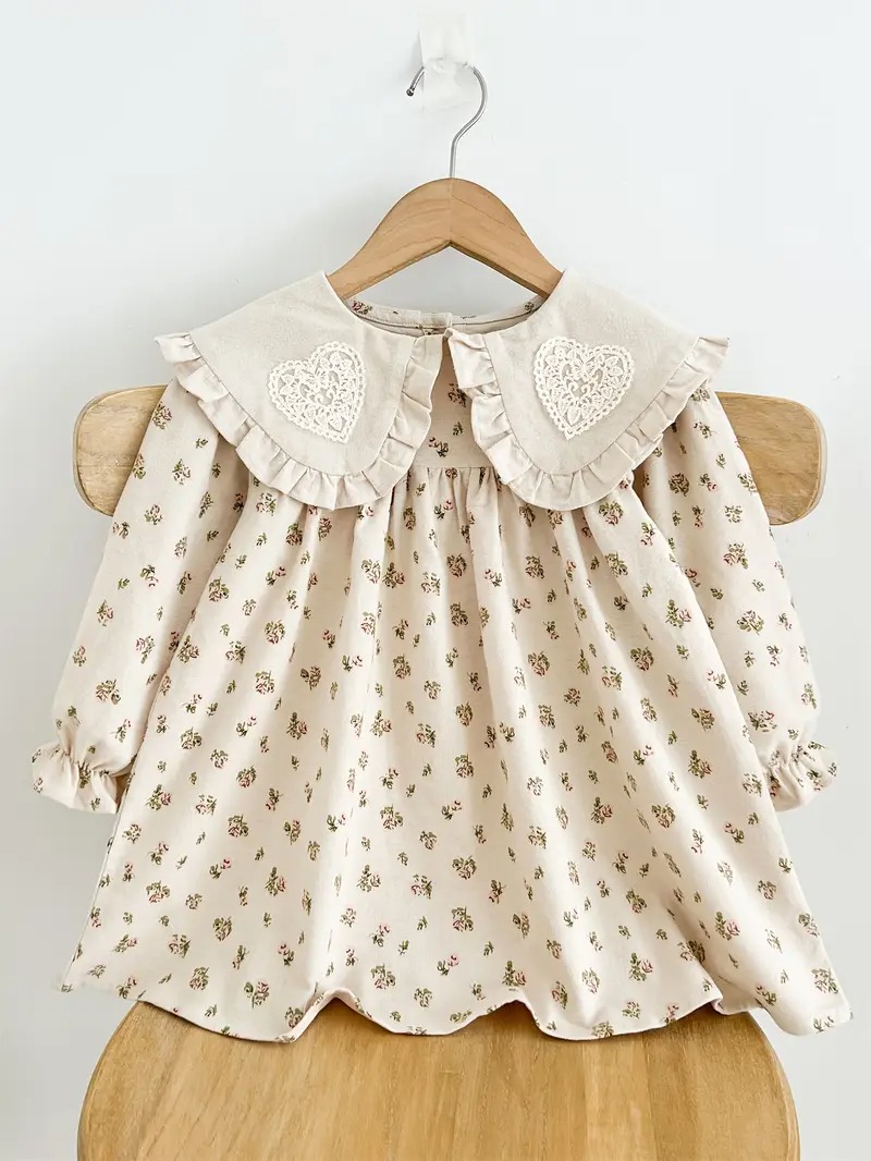 • lebabay Girls’ Floral dress with Lantern Sleeves
