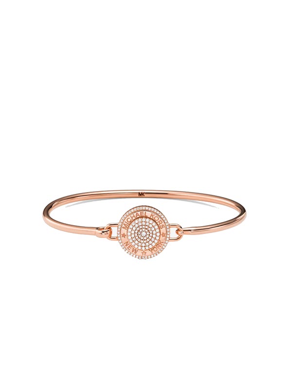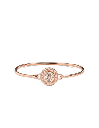 This MK Bracelet is Meticulously crafted from sterling silver and plated in 14K rose gold, it features a pavé-embellished coin pendant with MK new logo.