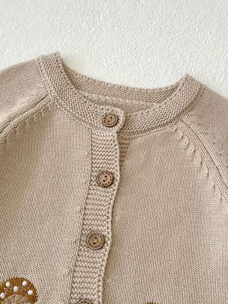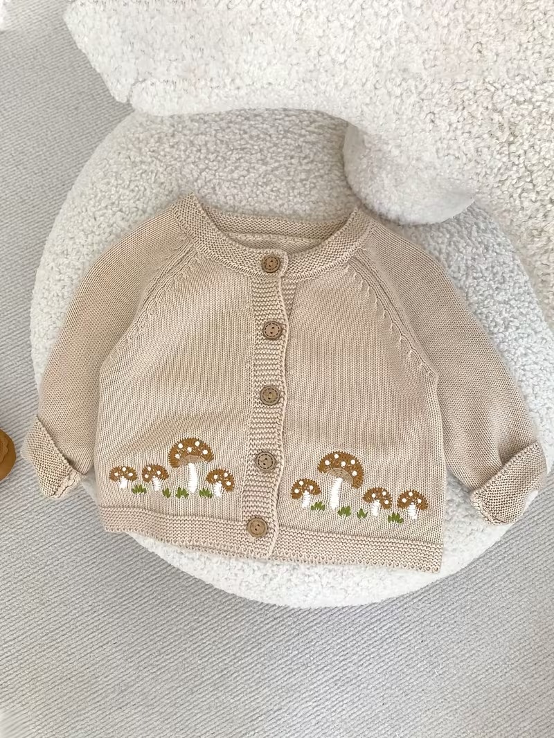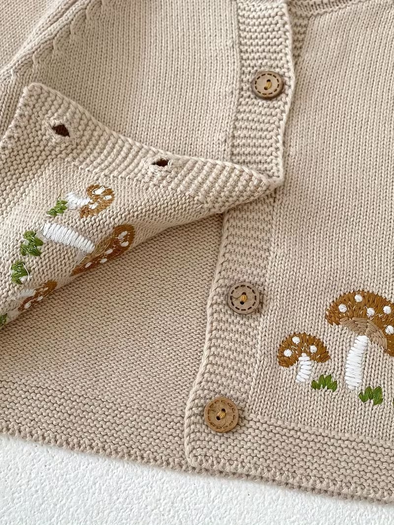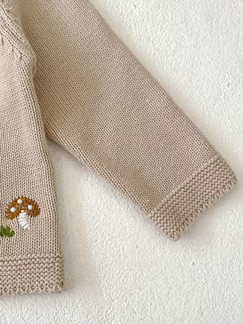 | Mushroom Embroidered Cotton Knitted Cardigan