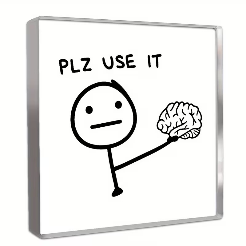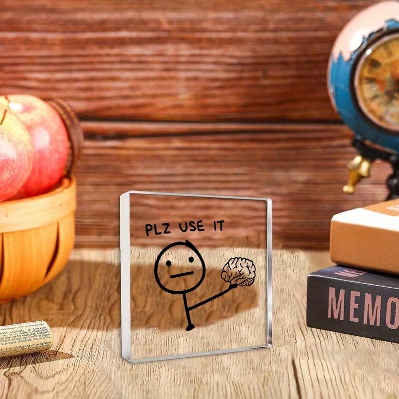 Funny Office Desk Decor – “PLZ USE IT” Computer Monitor Stand with Minimalist Stick Figure & Brain Design