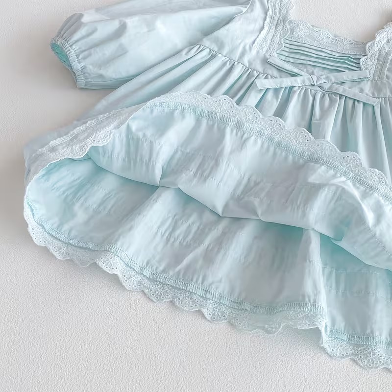 | Princess Dress with Square Neck & Lace Trim