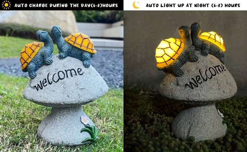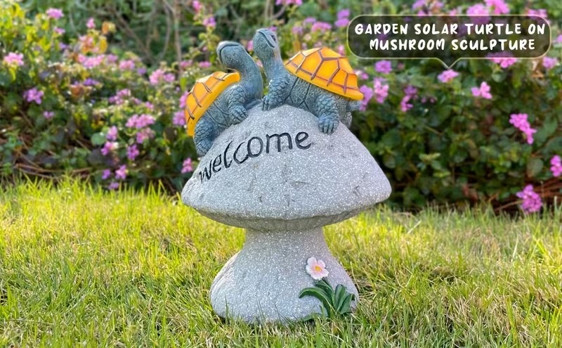 Solar Powered LED Turtle Mushroom Sculpture quantity