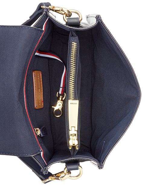 Classic designer colorblocking and the iconic logo adds unparalleled style to the Tommy Hilfiger Christine crossbody, in coated canvas paired with gold-tone hardware accents.
