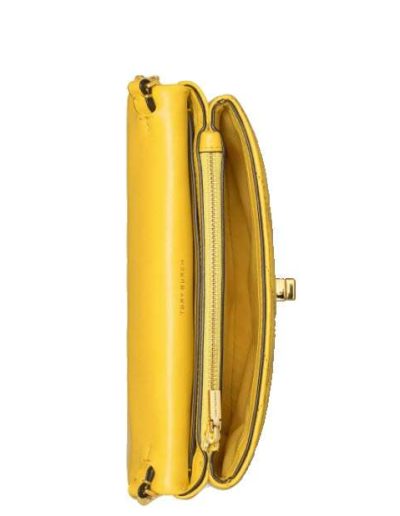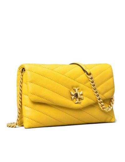 The Tory Burch Kira Chain Wallet is made of soft chevron-quilted leather and finished with a chain strap.