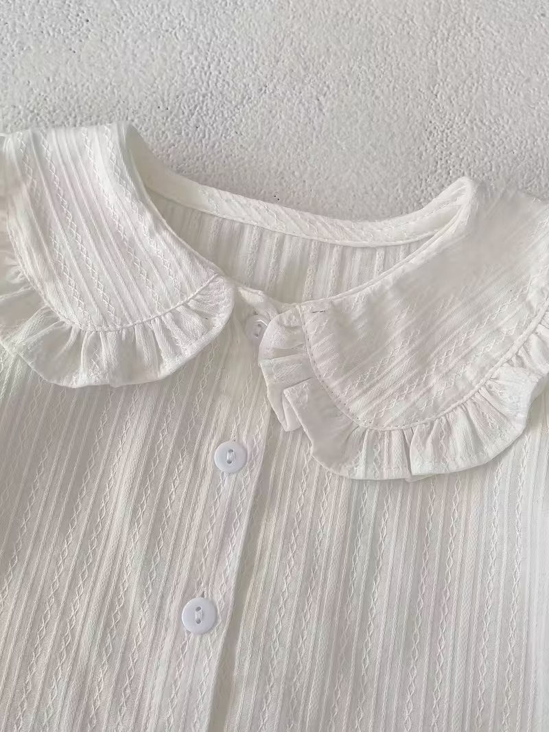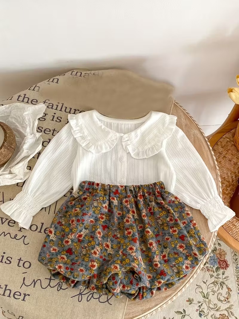 Baby Clothing Doll Collar Jacquard Top + Floral Double Layer Floral Pants Two-Piece Set
