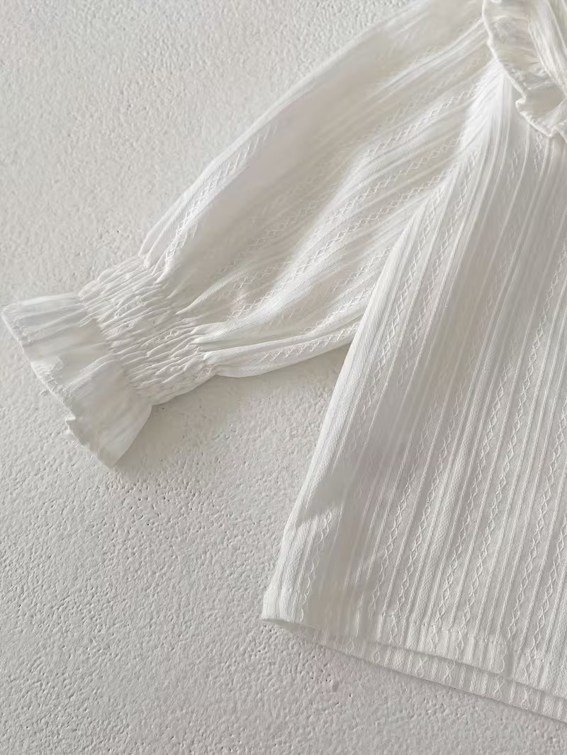 Two-Piece Set – Doll Collar Jacquard Top + Floral Double Layer Floral Pants