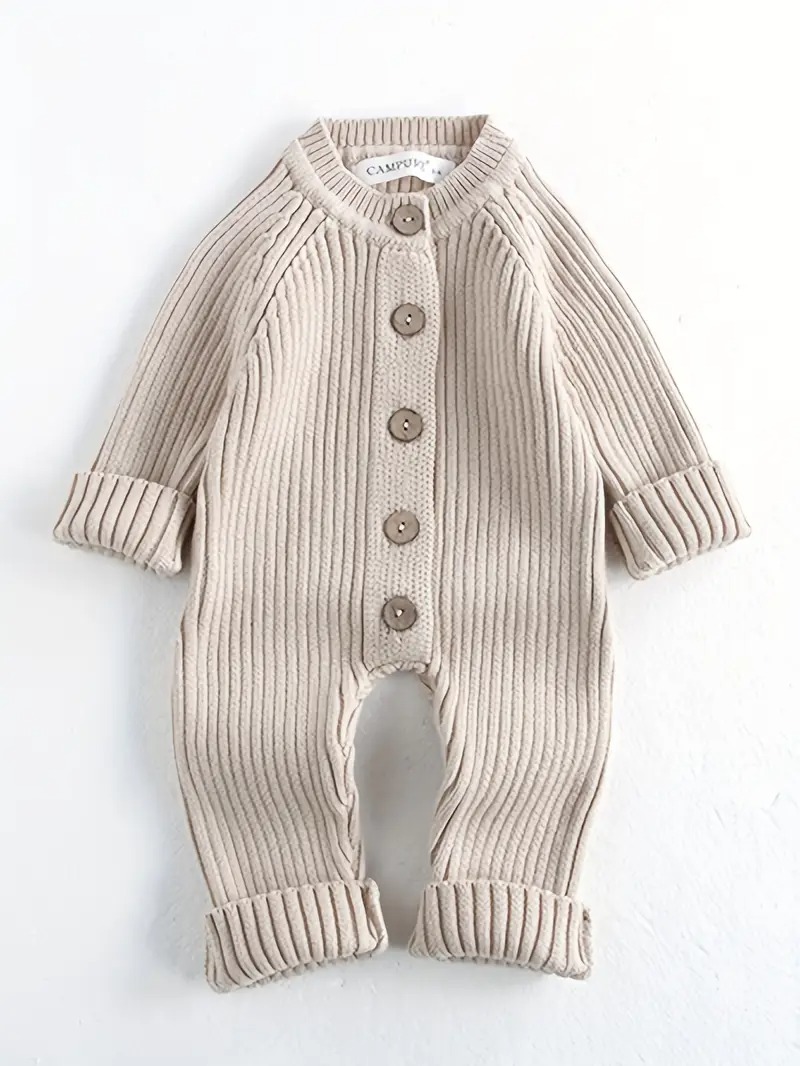 Unisex Romper – Long Sleeve Ribbed Bodysuit with Snap Closure